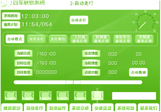 根據(jù)生產(chǎn)工藝流程,自動(dòng)確定行走的目標(biāo)位置。根據(jù)距目標(biāo)位置的遠(yuǎn)近,自動(dòng)控制機(jī)車的速度,在自動(dòng)走行中到達(dá)目標(biāo)位置時(shí)自動(dòng)停止、自動(dòng)對(duì)位。